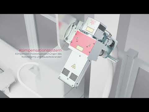 Ein im System integriertes mechanisches Kompensationssystem sorgt für eine gleichbleibend hohe Markierqualität – ganz ohne empfindliche elektronische Autofokuslösungen. Es gleicht Positionsabweichungen der Roboterarme, Toleranzschwankungen der Werkstücke und Variationen bei den Bauteilabmessungen aus. So bleibt der ideale Fokusabstand stets erhalten und die Markierung erfolgt präzise und zuverlässig.